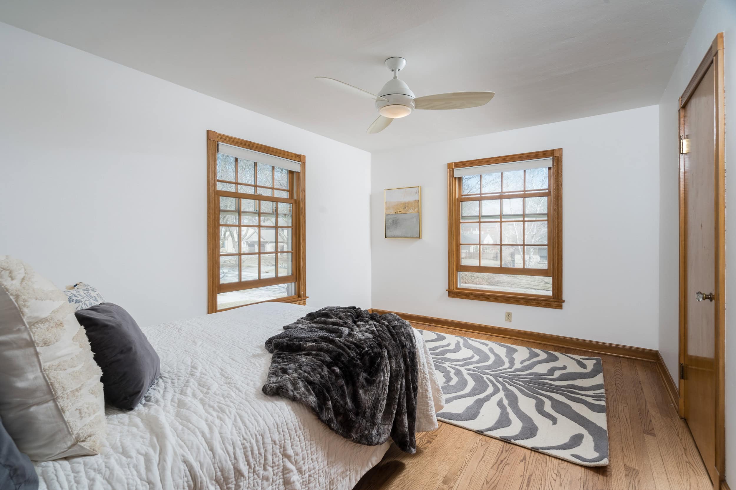 ● Two of the upstairs bedrooms are also painted Sherwin-Williams’ Alabaster, but for a bit